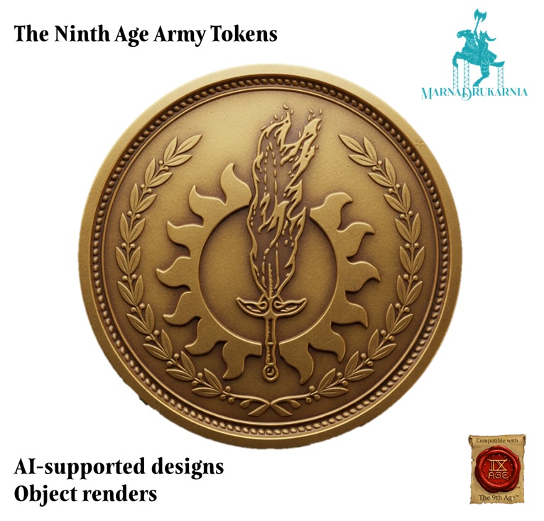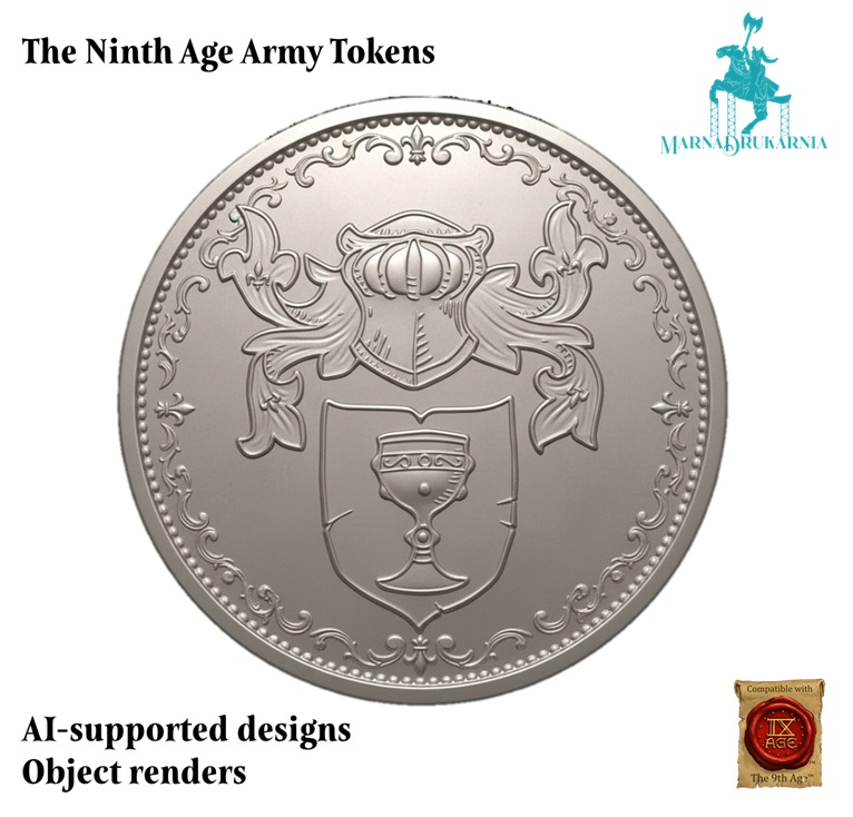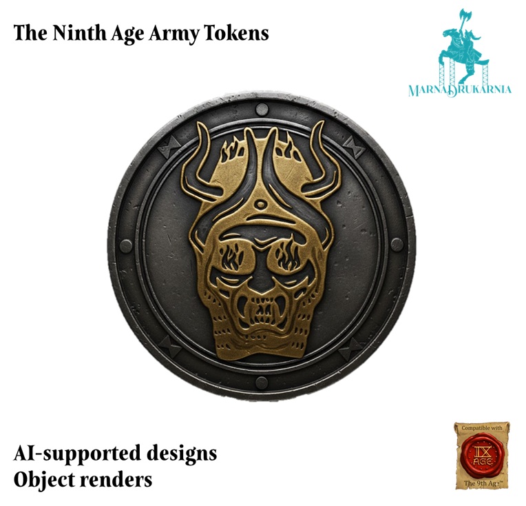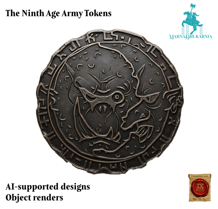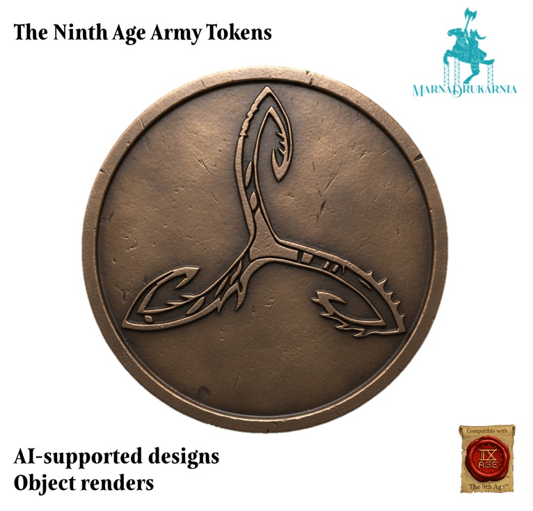Tokeny przedstawiają logotypy armii z systemu The Ninth Age osadzone na obiektach przypominających tematycznie monety tych nacji. Mają średnicę 30mm i około 3-4mm grubości. Przedmioty są wykonane z PLA i są jednokolorowe. Prosimy o wskazanie wybranego wzoru w komentarzu do zamówienia.