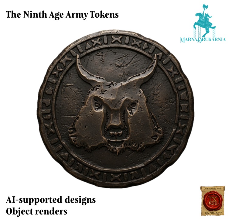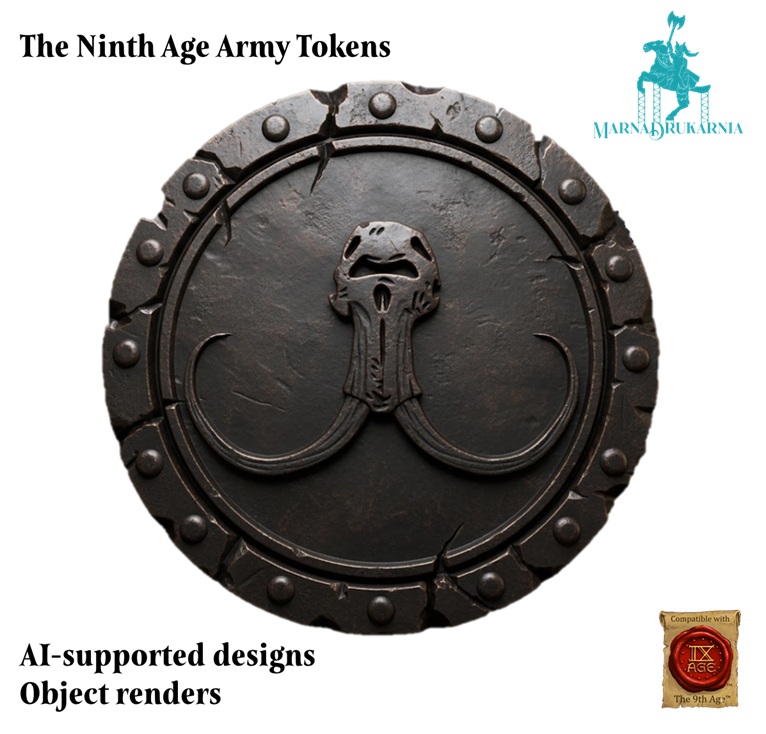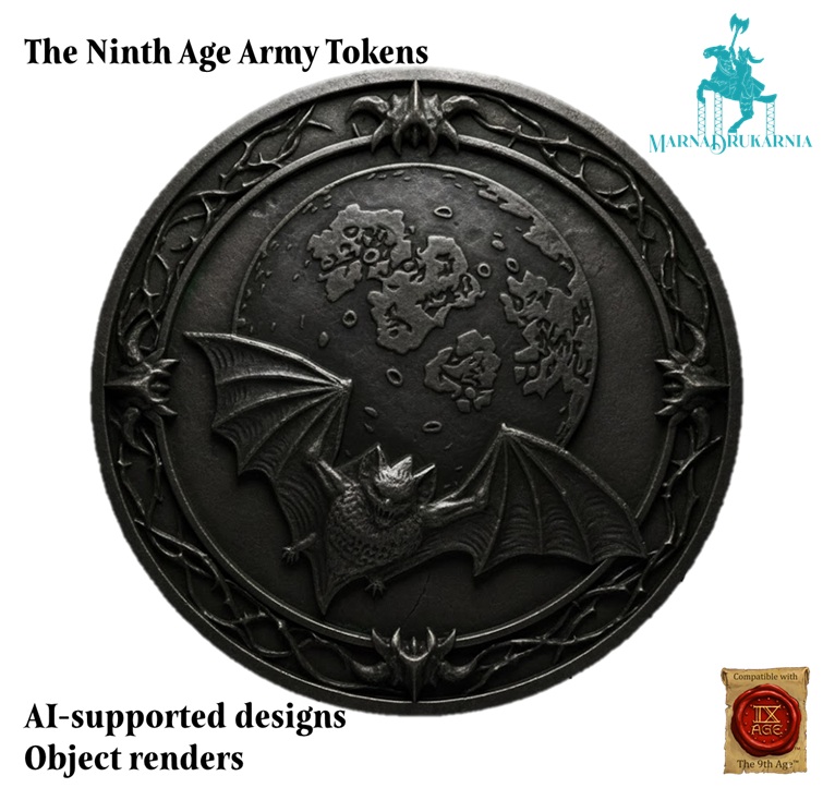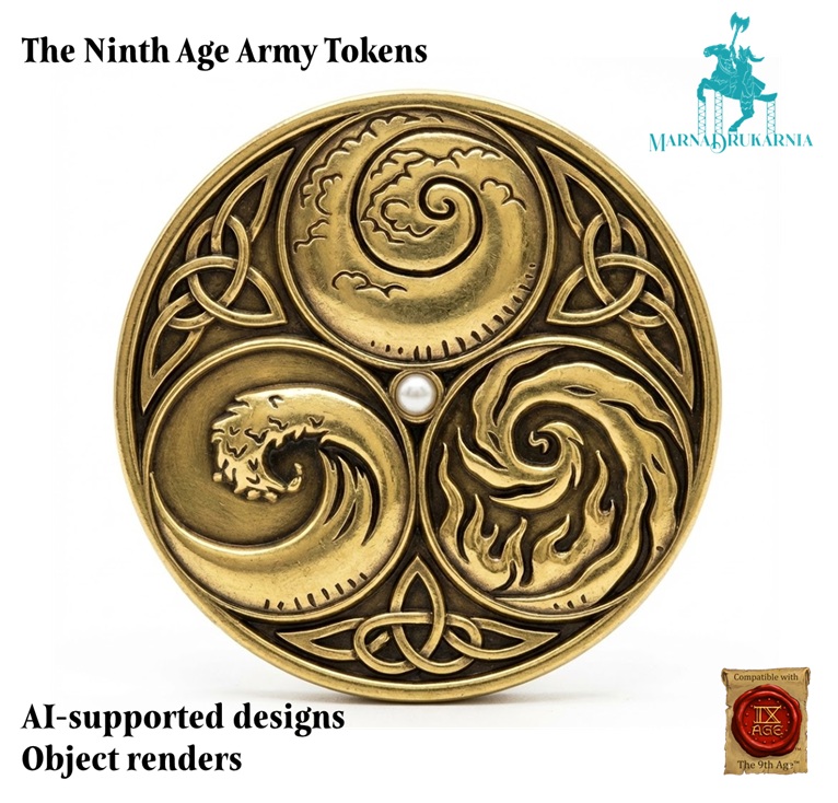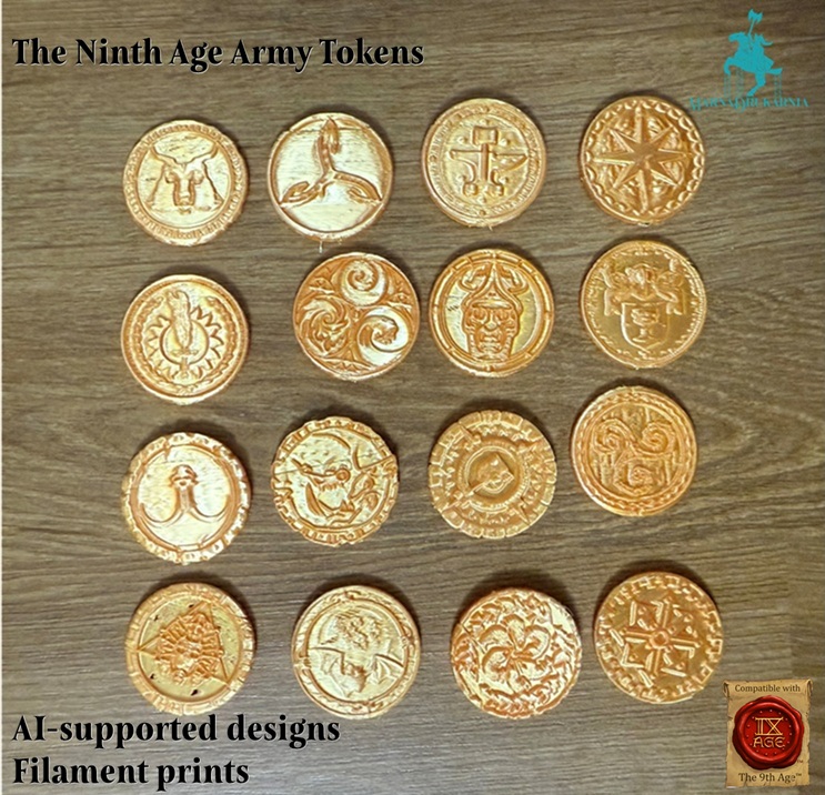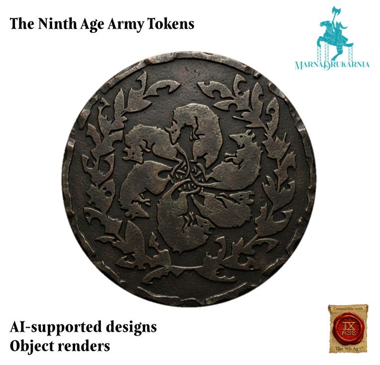 Tokeny przedstawiają logotypy armii z systemu The Ninth Age osadzone na obiektach przypominających tematycznie monety tych nacji. Mają średnicę 30mm i około 3-4mm grubości. Przedmioty są wykonane z PLA i są jednokolorowe. Prosimy o wskazanie wybranego wzoru w komentarzu do zamówienia.