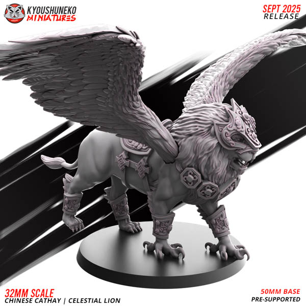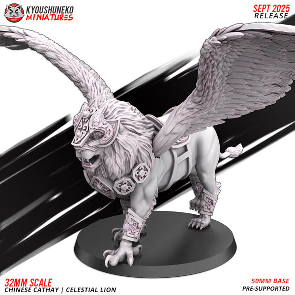 zł63Oferujemy zestaw (1 figurka lwa i 1 figurka wybranego jeźdźca) Celestial Lion Mount od Kyoushuneko Miniatures z ich kolekcji Chinese Cathay, wydrukowany na drukarce żywicznej.