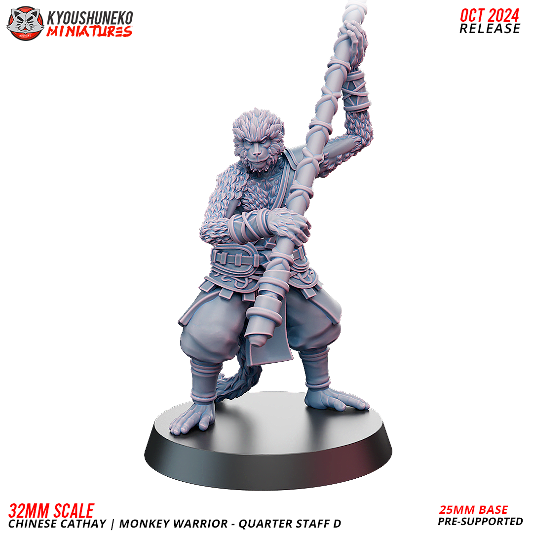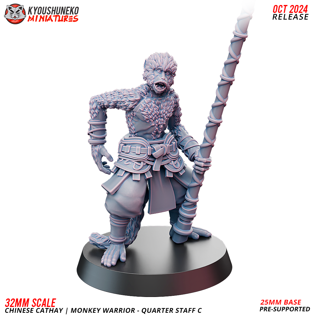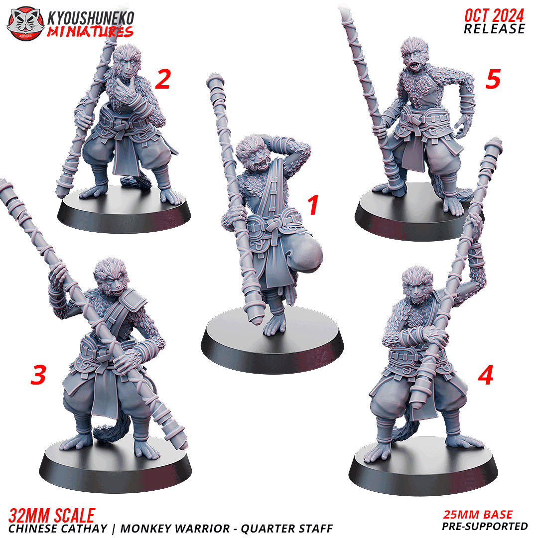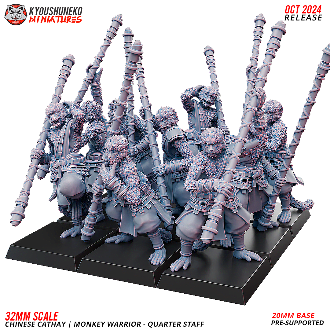 Oferujemy zestaw (10 figurek) Monkey Warriors with Quarterstaves od Kyoushuneko Miniatures z ich kolekcji Chinese Cathay, wydrukowany na drukarce żywicznej
