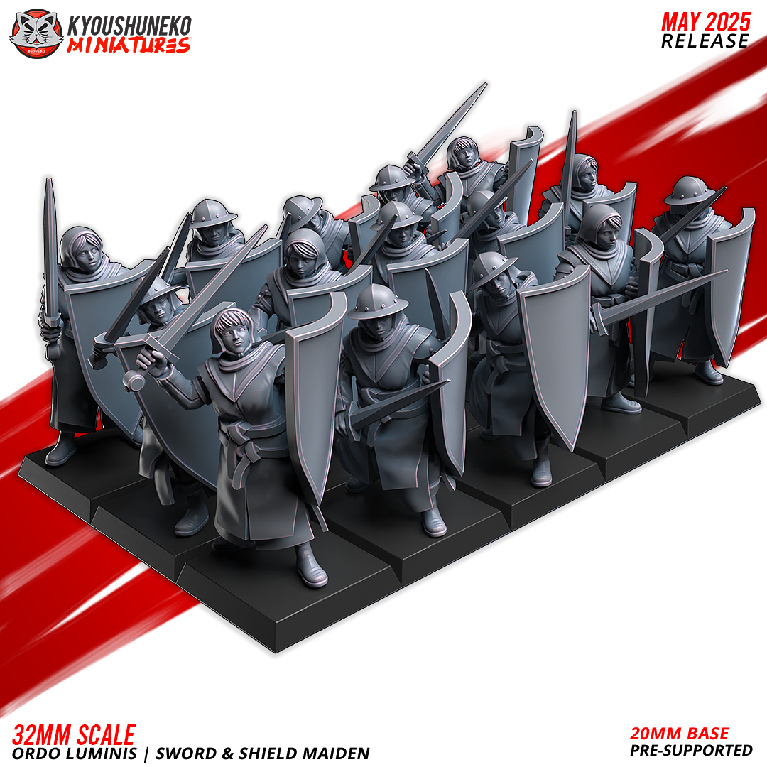 Oferujemy zestaw (10 figurek) Ssword & Shield Maidens od Kyoushuneko Miniatures z ich kolekcji Ordo Luminis, wydrukowany na drukarce żywicznej