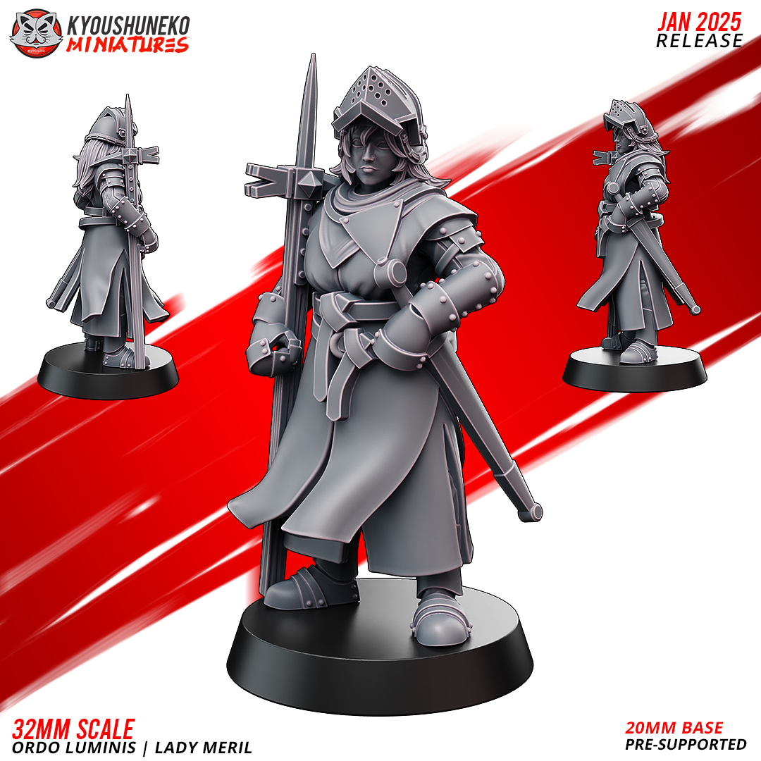 Oferujemy zestaw (1 figurka) Lady Merlin od Kyoushuneko Miniatures z ich kolekcji Ordo Luminis, wydrukowany na drukarce żywicznej