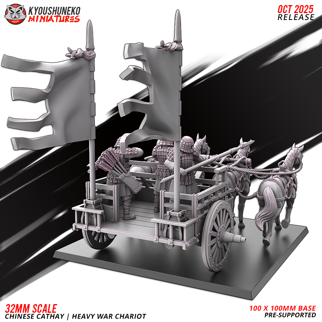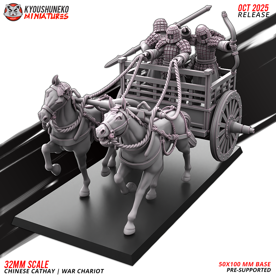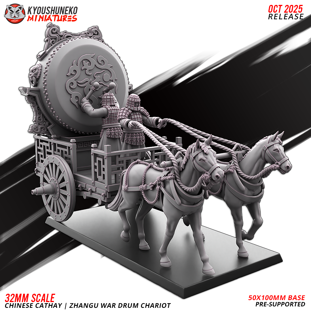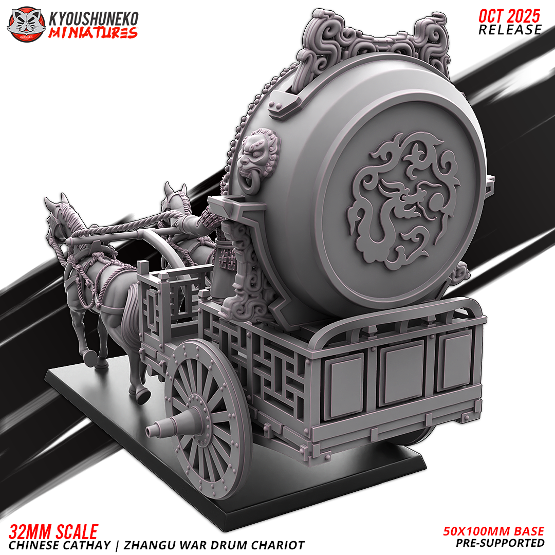 145 złOferujemy zestaw (1 figurka rydwanu, 2 konie i 2 figurki załogi) Zhangu War Drum Chariot od Kyoushuneko Miniatures, wydrukowany na drukarce żywicznej.