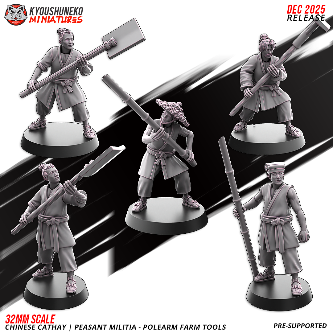 69 złOferujemy zestaw (10 figurek) Peasant Militia with Polearms and Farm Tools od Kyoushuneko Miniatures, wydrukowany na drukarce żywicznej.