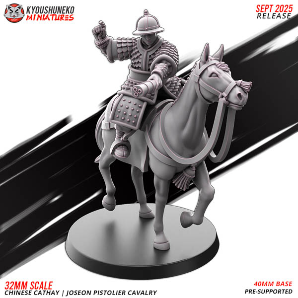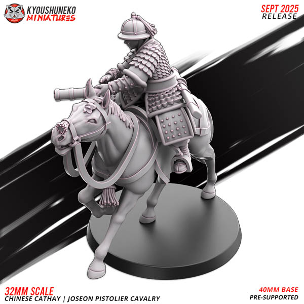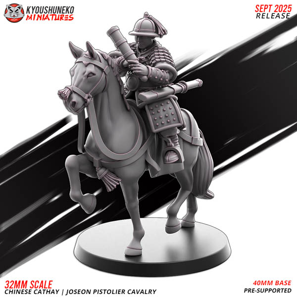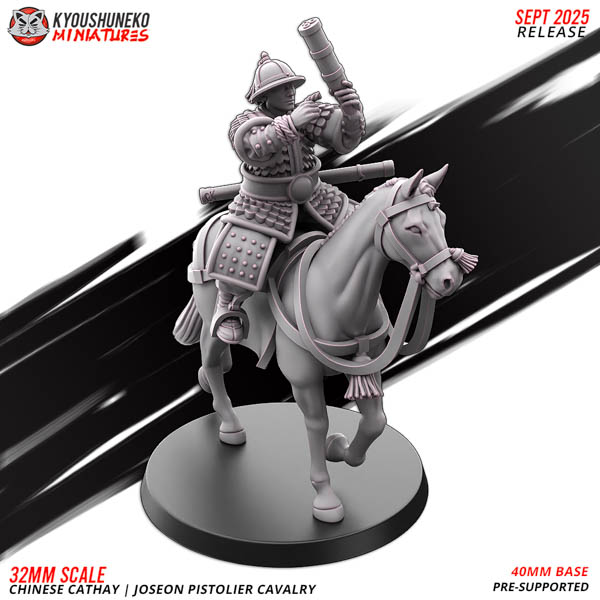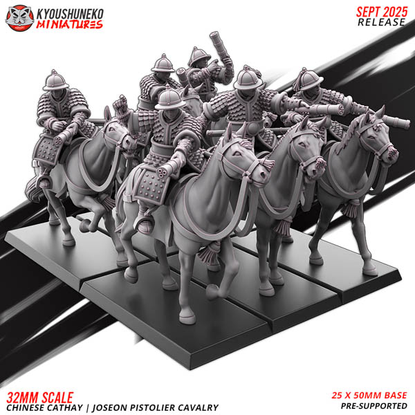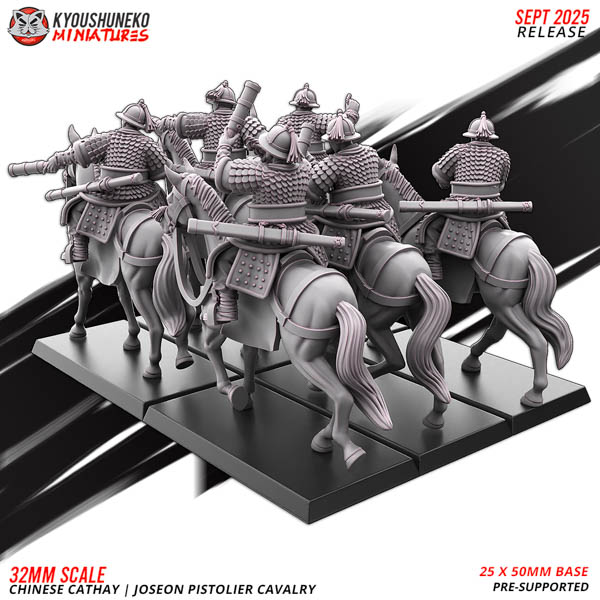 Oferujemy zestaw (5 figurek) Joseon Pistolier Cavalry od Kyoushuneko Miniatures z ich kolekcji Chinese Cathay, wydrukowany na drukarce żywicznej