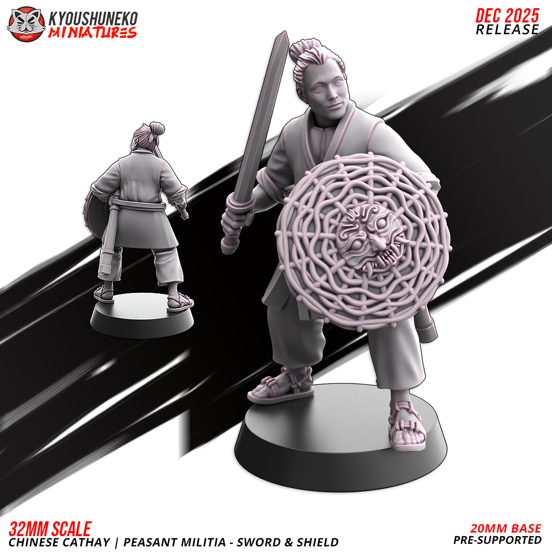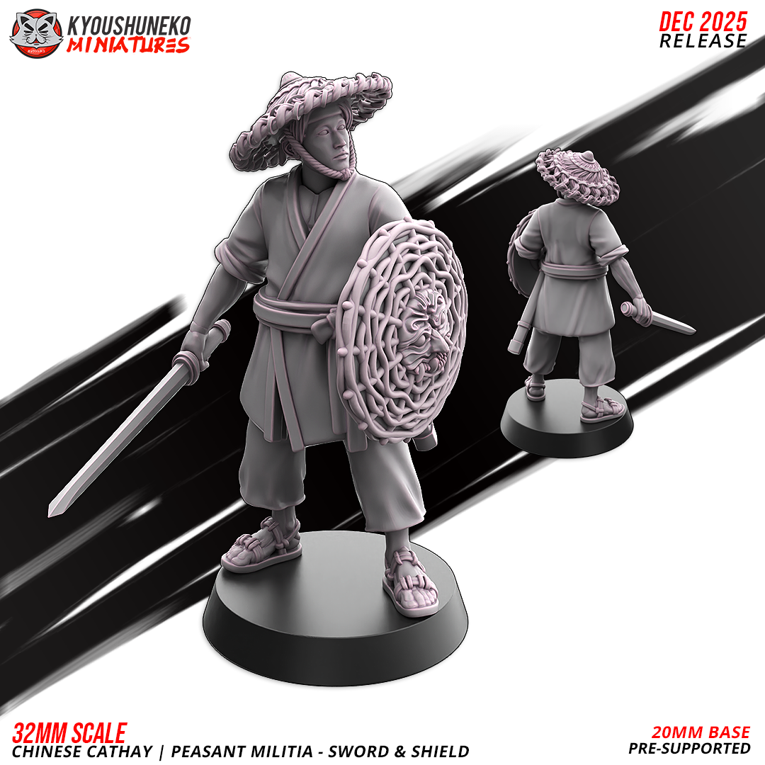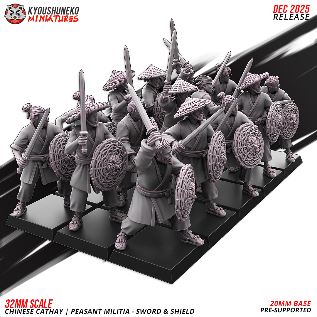 Oferujemy zestaw (10 figurek) Peasant Militia with Swords and Shields od Kyoushuneko Miniatures, wydrukowany na drukarce żywicznej.
