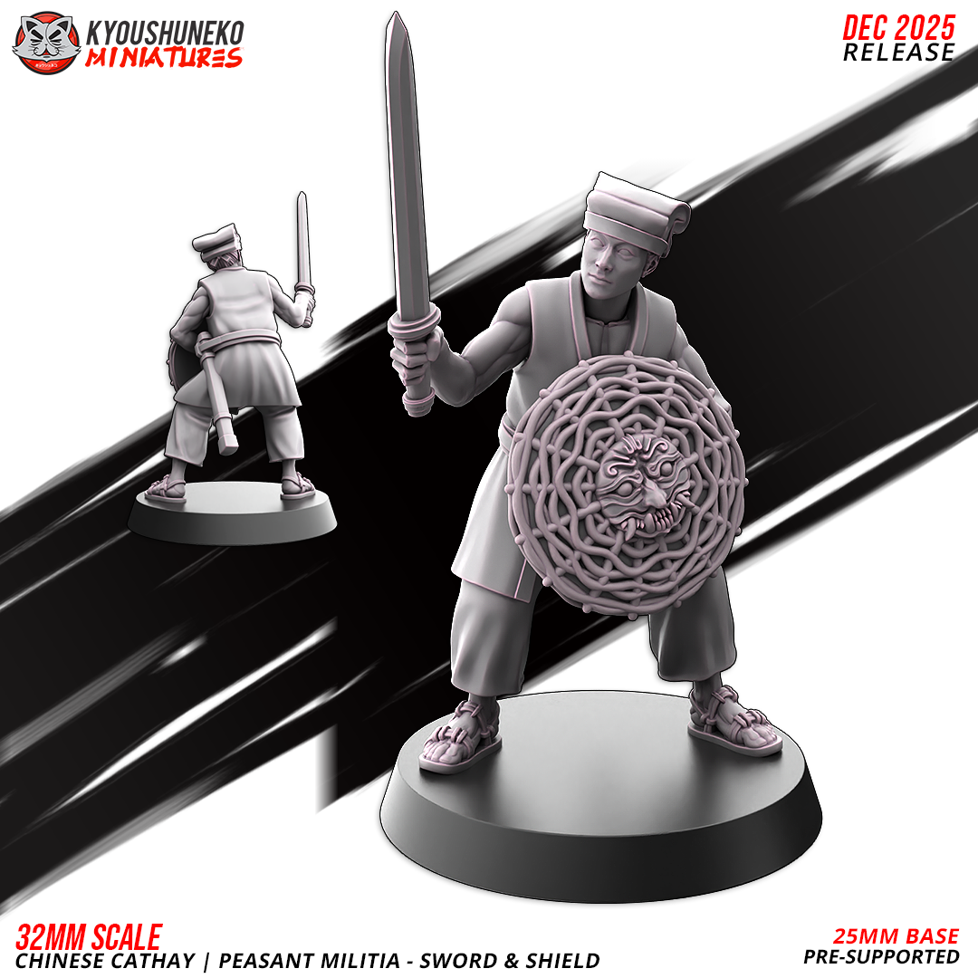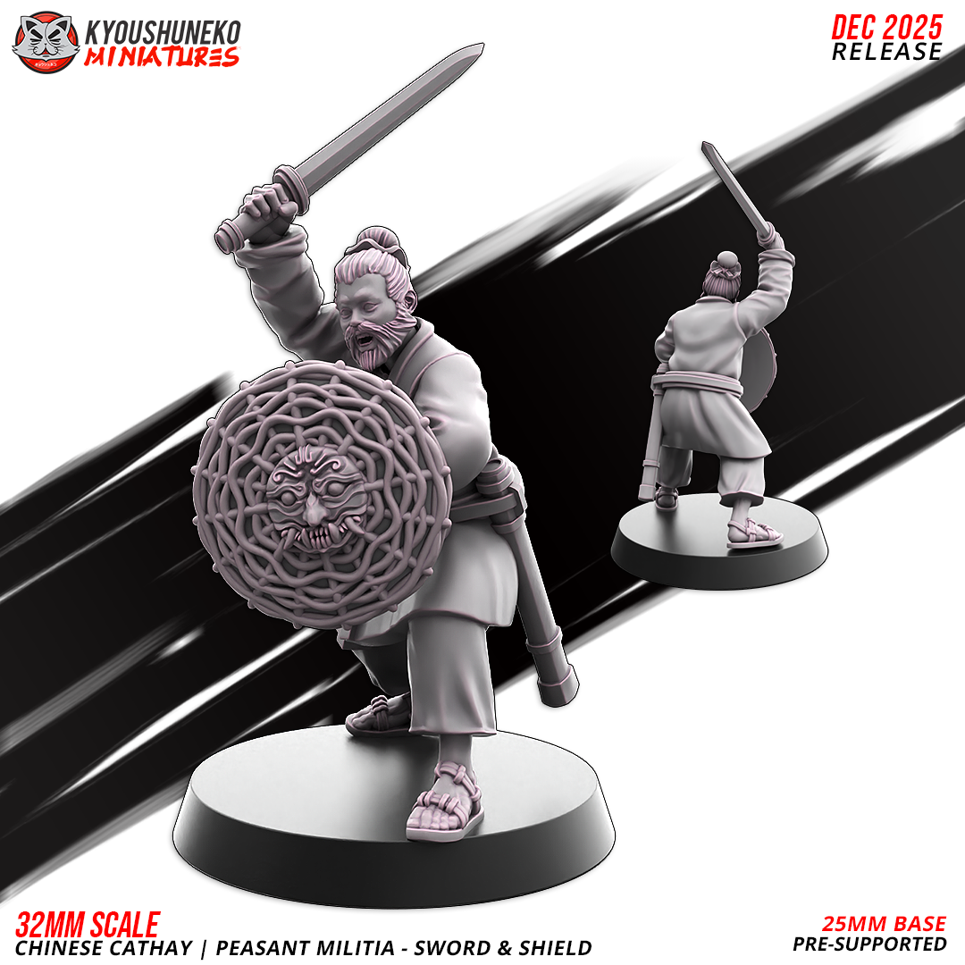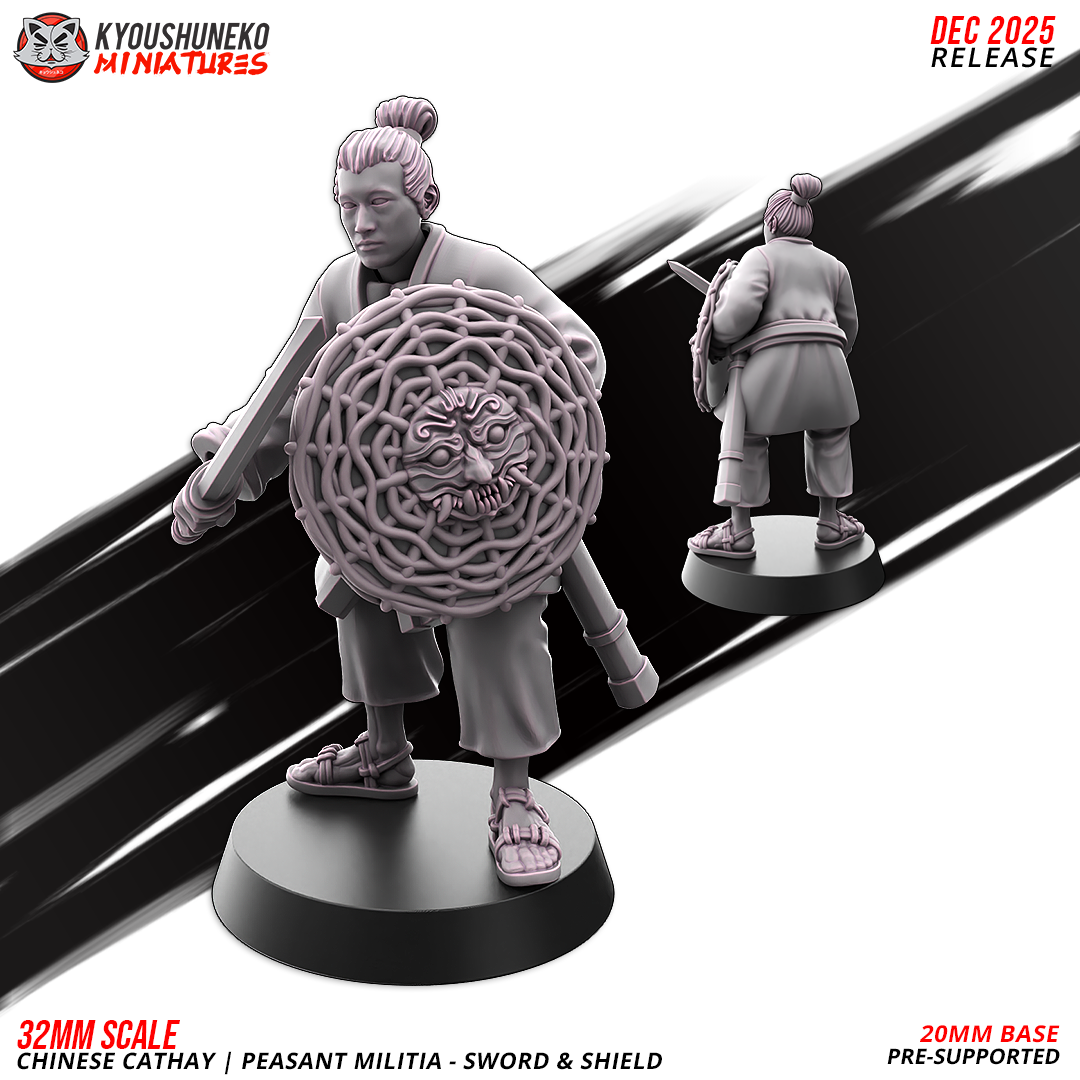 Oferujemy zestaw (10 figurek) Peasant Militia with Swords and Shields od Kyoushuneko Miniatures, wydrukowany na drukarce żywicznej.