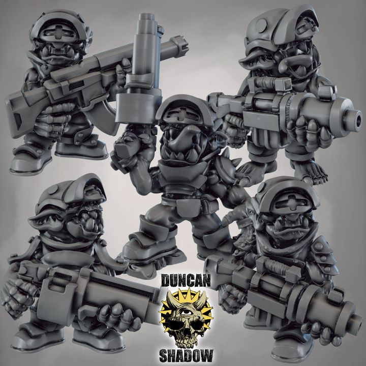 Oferujemy zestaw (10 figurek) Sci-Fi Goblins with Guns od Duncan Shadow, wydrukowany na drukarce żywicznej